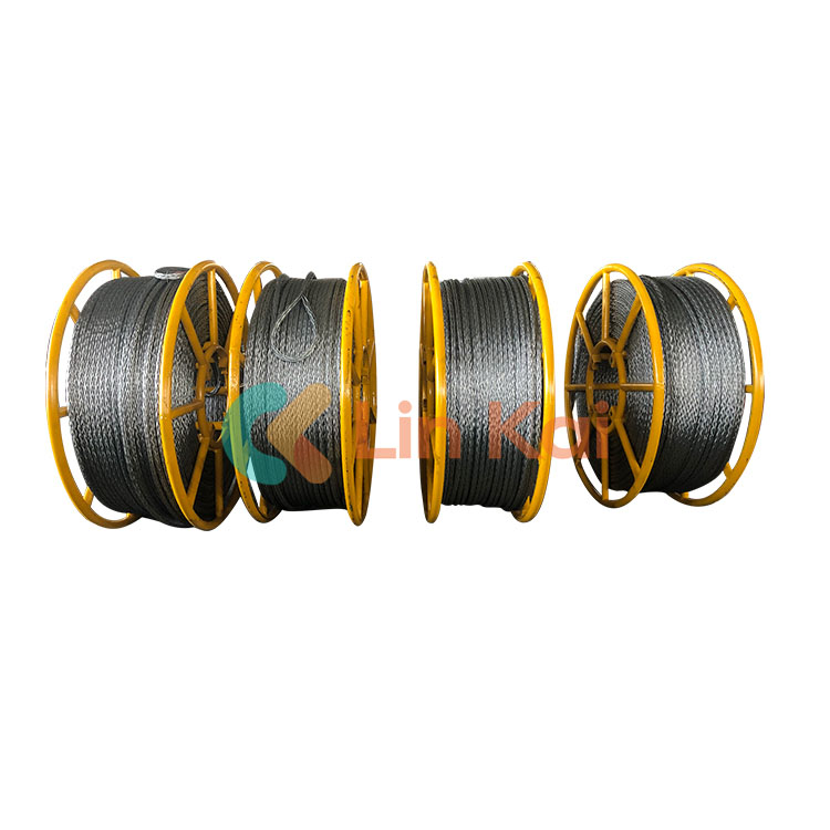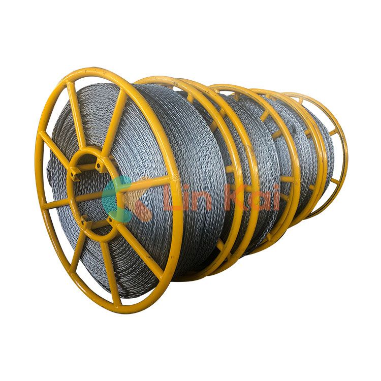 ওভারহেড ট্রান্সমিশন লাইন স্থাপন করার সময়, 16 মিমি অ্যান্টি টুইস্ট স্টিল ওয়্যার রোপ কন্ডাক্টর বা OPGW তারের আঁকতে পাইলট তারের দড়ি হিসাবে ব্যবহার করা হয়। 1960 MPa উচ্চ-শক্তির গ্যালভানাইজড স্টিলের তার ব্যবহার করে ব্রেইড করা হয়েছে, 16 মিমি অ্যান্টি-টুইস্টিং ব্রেইডেড স্টিলের তারের দড়ি টানা হওয়ার সময় ঘূর্ণন প্রতিরোধ করে।